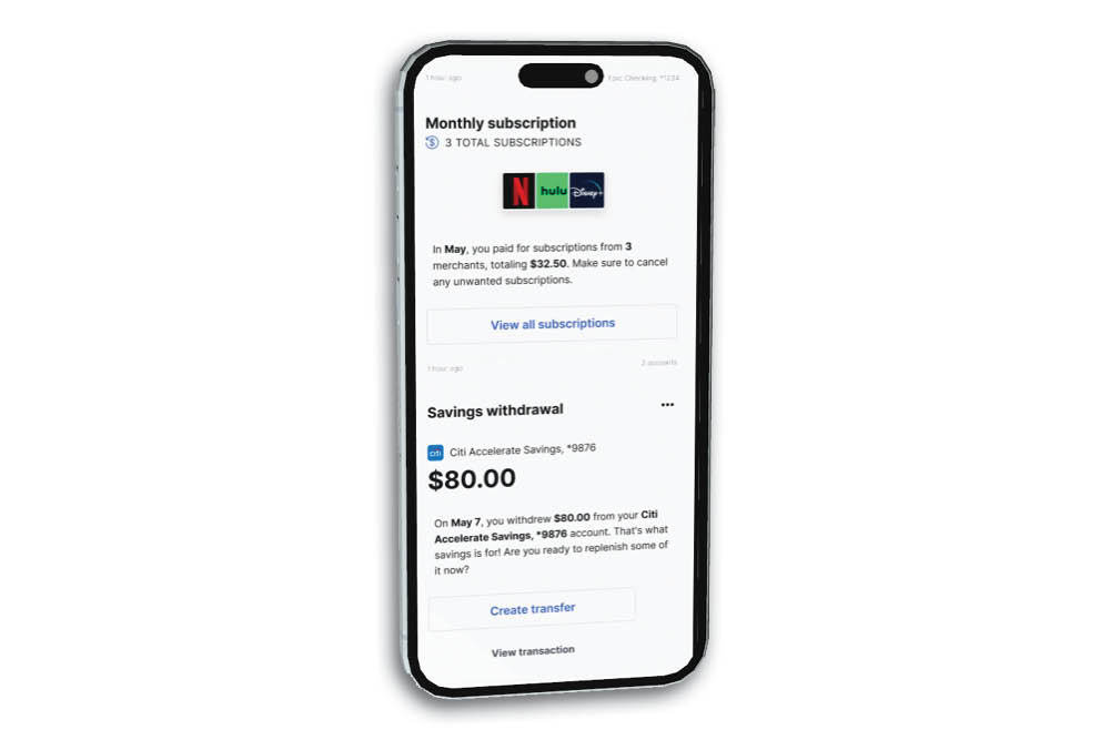 Consistent saving toward financial goals is important for building financial strength. We’ll let you know when you have extra cash in your account that can be moved to savings so you can hit your goals sooner.